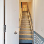The building entrance is at street level, and access to the studio requires climbing stairs to the first floor.