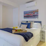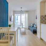 The apartment stands out for its bright décor, featuring a Mediterranean style that combines light tones with blue accents and carefully selected details that create a calm and comfortable atmosphere. The space is thoughtfully designed to make the most of every corner, offering a functional and welcoming environment.
