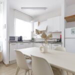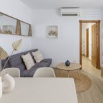El diseño del apartamento combina un estilo fresco y desenfadado con detalles boho playeros que evocan la brisa marina y transmiten sensación de calma. La sala de estar resulta perfecta para relajarse, leer un libro o planear la siguiente ruta por la ciudad, mientras que la cocina te da la libertad de organizar tu viaje a tu ritmo, desde desayunos ligeros hasta cenas románticas.