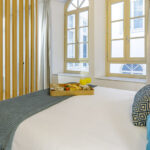 En la zona de descanso, el estudio ofrece una cama de matrimonio, mesillas de noche, armario y dos ventanas orientadas al patio interior del edificio, creando un ambiente tranquilo y agradable para el descanso.